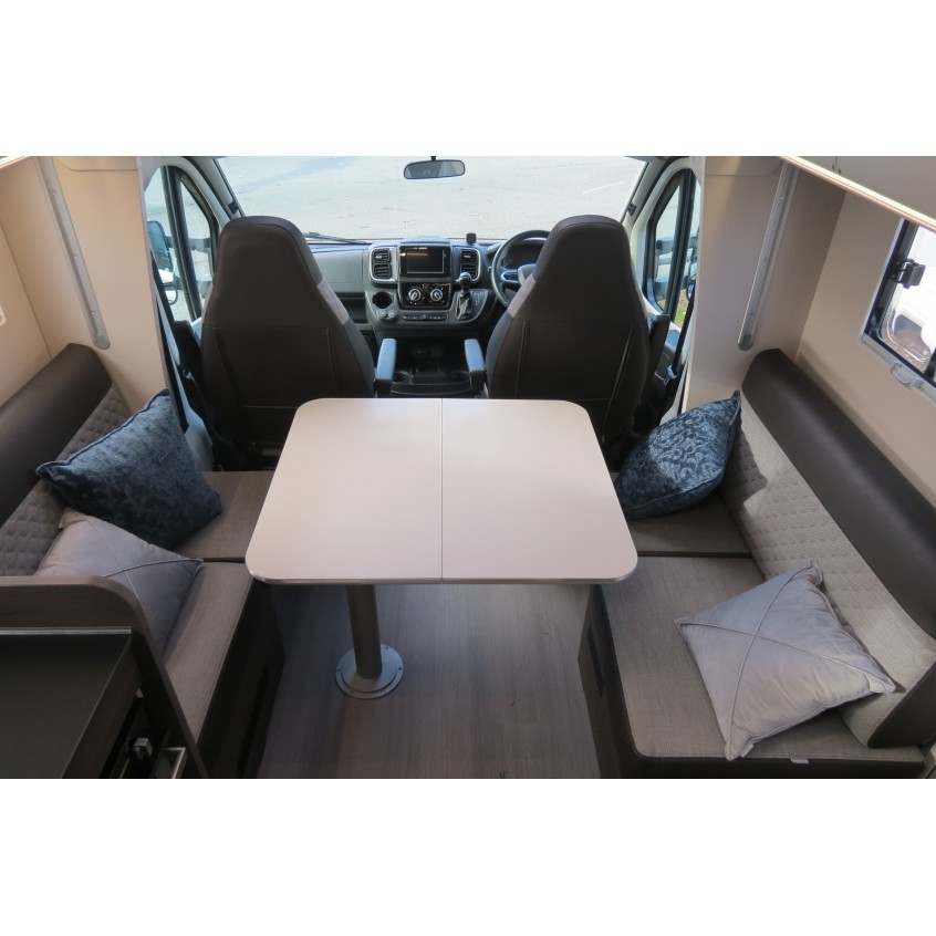 The Supreme: premium finishes, all-season travel, and a flexible living space with room to move. It’s well built with dual flooring and a modern interior. This one is on the multijet 3 160bhp 9 speed auto gearbox, with extras like cycle rack, automatic mobile charging point, reverse camera, air suspension, WiFi, awning, flyscreen hab door, Alde heating, a large garage with tie down points, and carpets that have never been used! just over 8,000 miles on the clock so it's barely been run in!