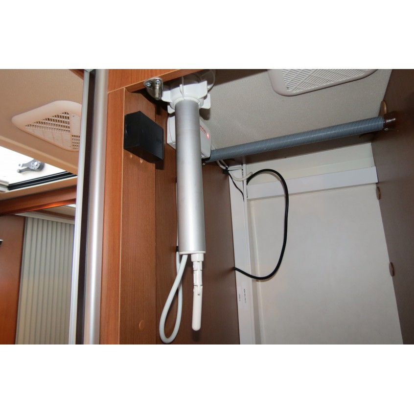 There's a great manual drop down bed, fixed transverse double bed & a bathroom with separate shower unit.