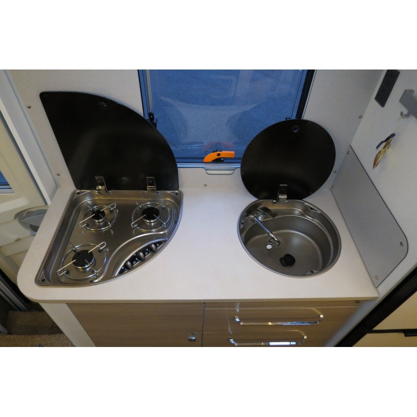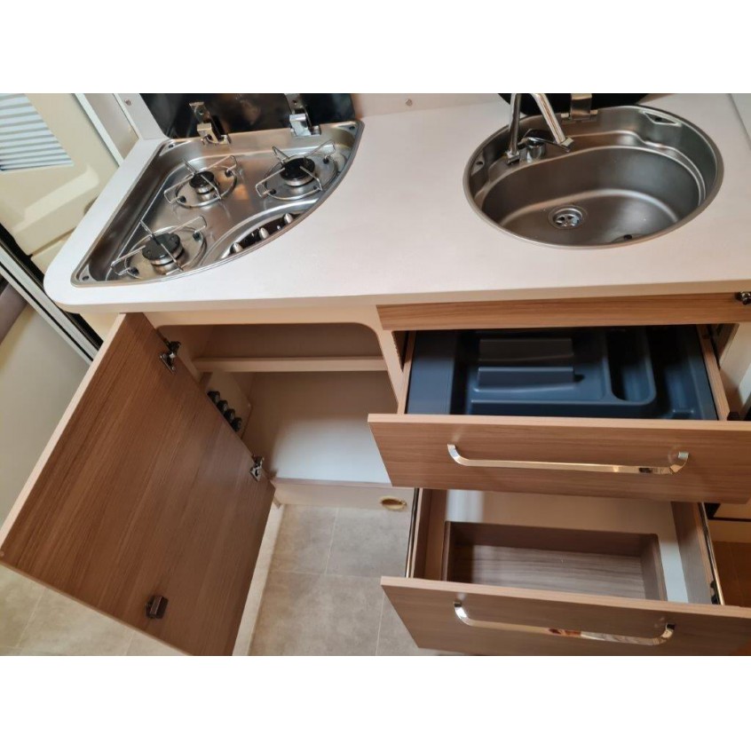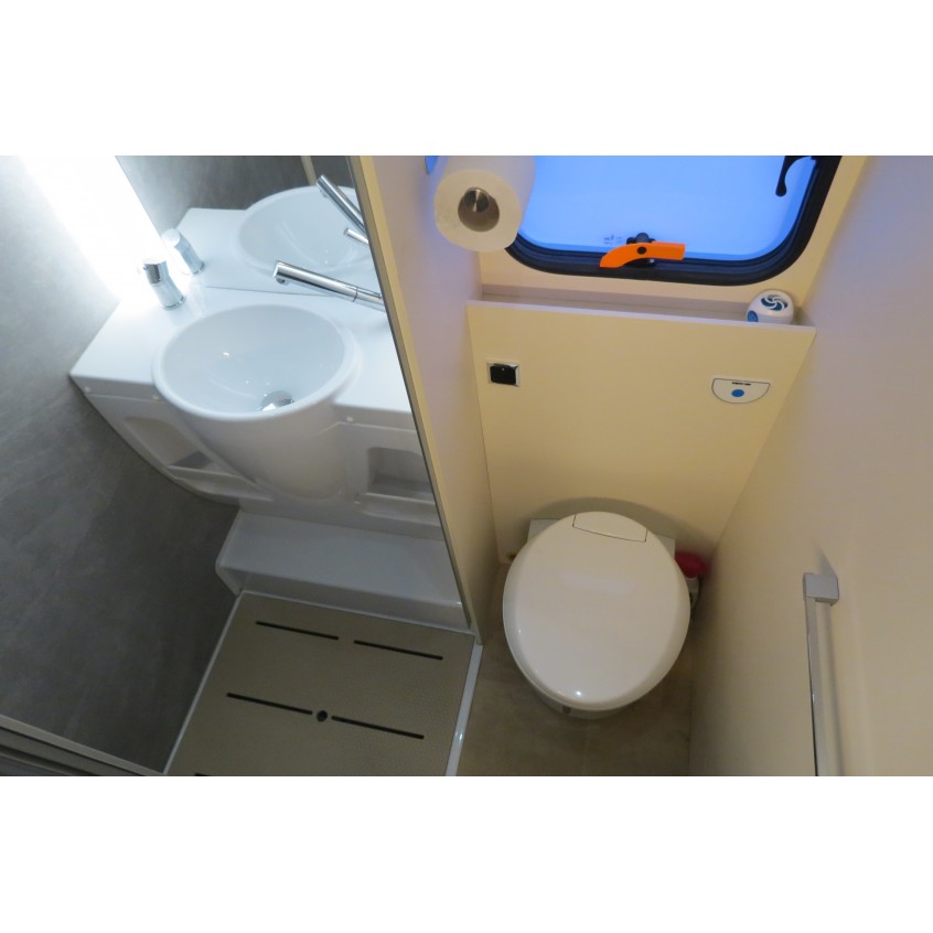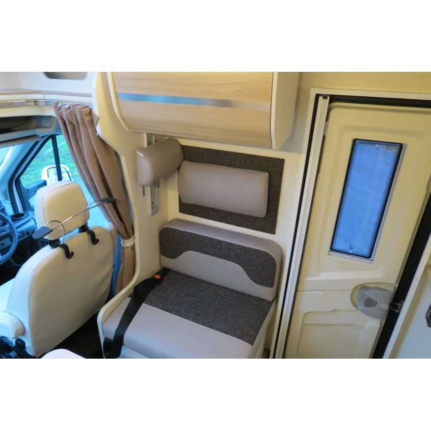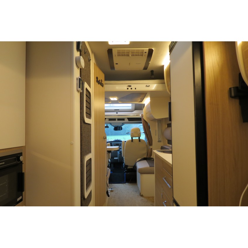 Here we have a superb layout by Rimor on this Evo 77 Plus. It's based on the 2.0L Ford Transit chassis & is a 170 BHP Euro 6. The van has 5 belts and also is a 5 berth due to the twin drop-down electric beds over the dinette and U shape lounge. This really is a stunning motorhome nicely finished inside with adjustable LED lighting to give you whatever mood takes your fancy. It has reverse camera, habitation air conditioning, bike rack, dash camera, rainfall separate shower, external BBQ point, tracker, cat 1 alarm, flyscreen hab door, 141L fridge, tv aerial, swivel seats, & much more.